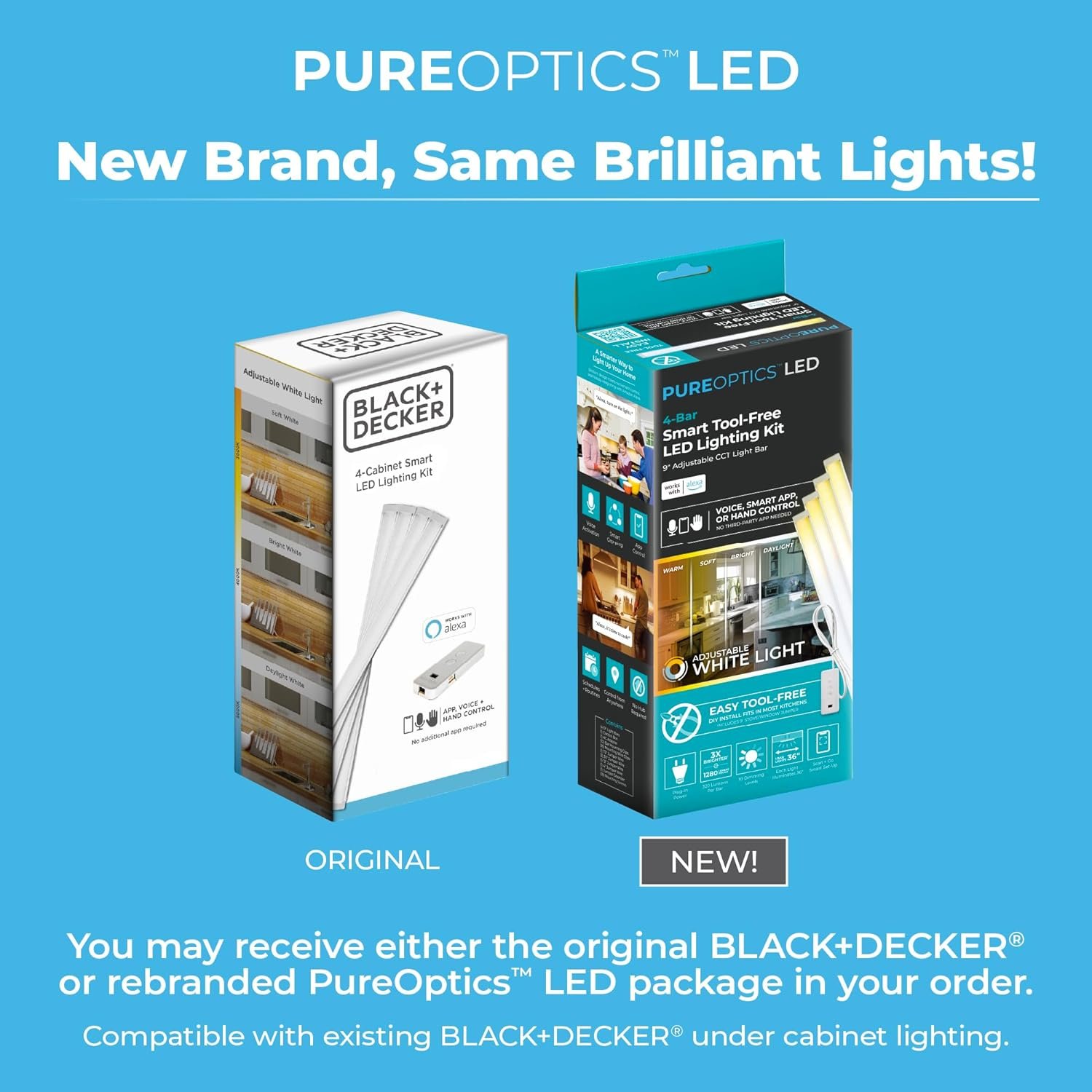 Upgrade your home lighting with the PureOptics LED Works with Alexa Smart LED Under Cabinet Lighting Kit. Effortlessly control brightness, color temperature, and power using just your voice or motion, and enjoy hassle-free installation without any tools. The ultra-thin, energy-efficient light bars offer brilliant, customizable illumination for kitchens, cabinets, or closets, while lasting up to 50,000 hours. Perfect for modern smart homes, this kit is easy to integrate and customize, making it an ideal choice for anyone seeking convenience and style.