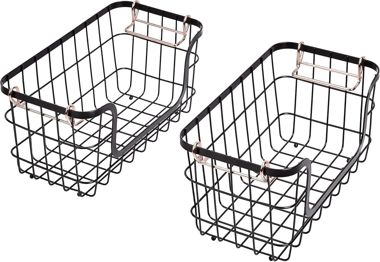 • Durable Construction: Made from steel wire with a sleek black finish and sturdy rose gold handles, these baskets combine both style and longevity.
