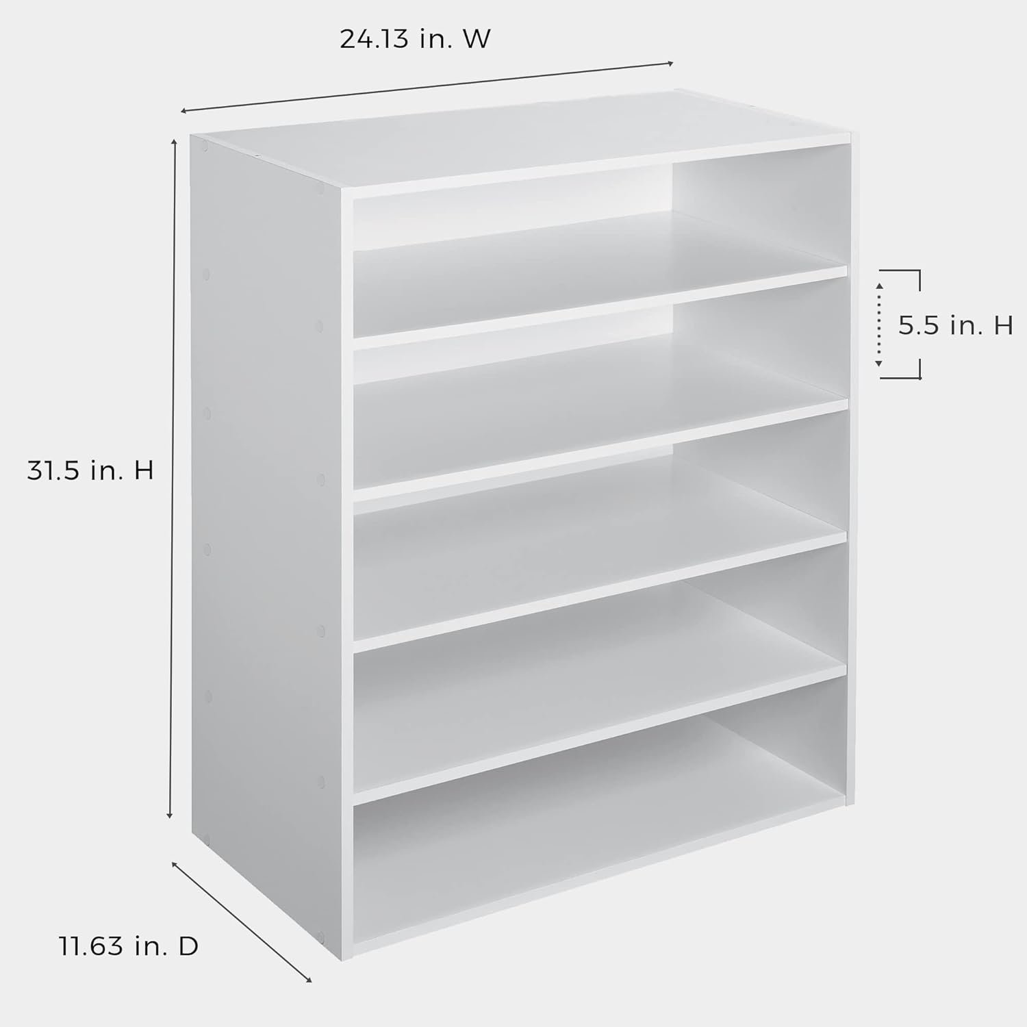 Organize your space effortlessly with the ClosetMaid 1565 Stackable 5-Shelf Organizer from the ClosetMaid Store. This sturdy white laminate unit features five fixed shelves, ideal for storing up to 10 pairs of standard-sized shoes or other essentials. Its stackable design lets you customize your storage, while the TSCA TITLE VI compliance ensures safety and durability. A perfect pick for anyone looking to maximize closet space with ease and style!