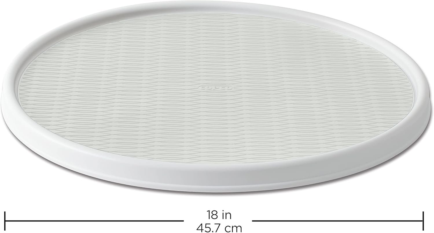 The Copco Basics Non-Skid Lazy Susan, a versatile 18-inch turntable, is ideal for organizing any space—from kitchens and bathrooms to offices and garages. Its smooth-glide rotation ensures easy access to items, while the non-skid liner and raised rim keep everything securely in place. Perfect for maximizing storage, this Copco product is easy to clean and built to last with a lifetime limited warranty, making it a smart and practical addition to any home.