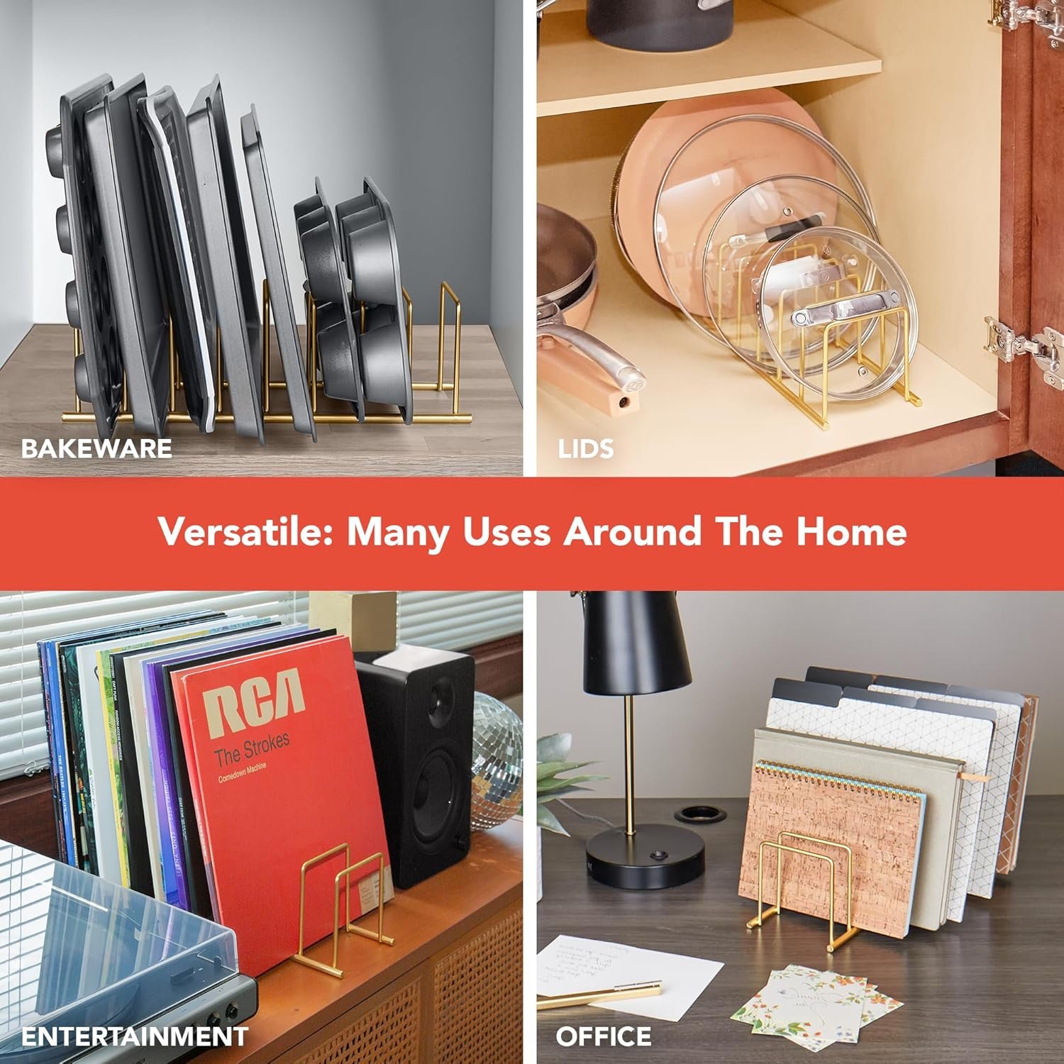- 8-Slot Multi-Use Organizer: Offers dedicated vertical slots, serving as both a bakeware storage unit and a cookware holder. Easily store plates, cookie sheets, and cutting boards.