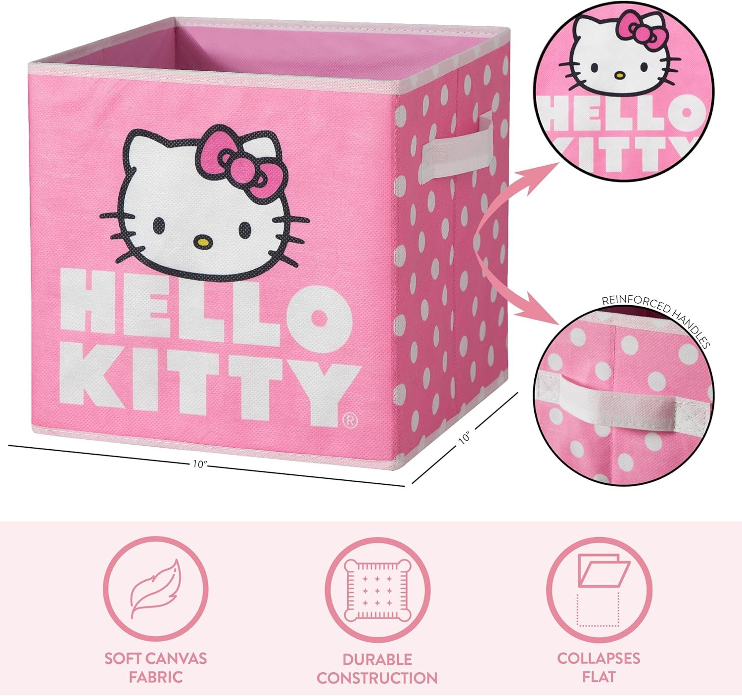 Each package includes two spacious Hello Kitty-themed bins, measuring 10″ x 10″—ideal for cube organizers or shelving systems. - Will these fit standard cube organizers?