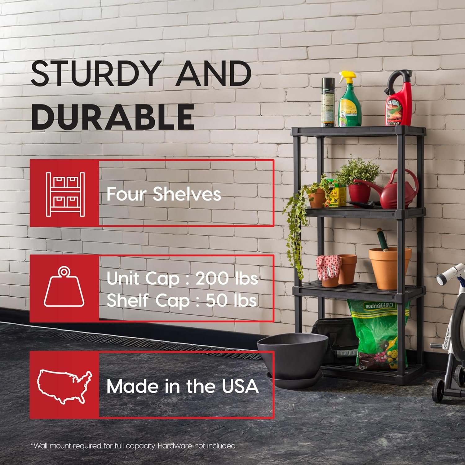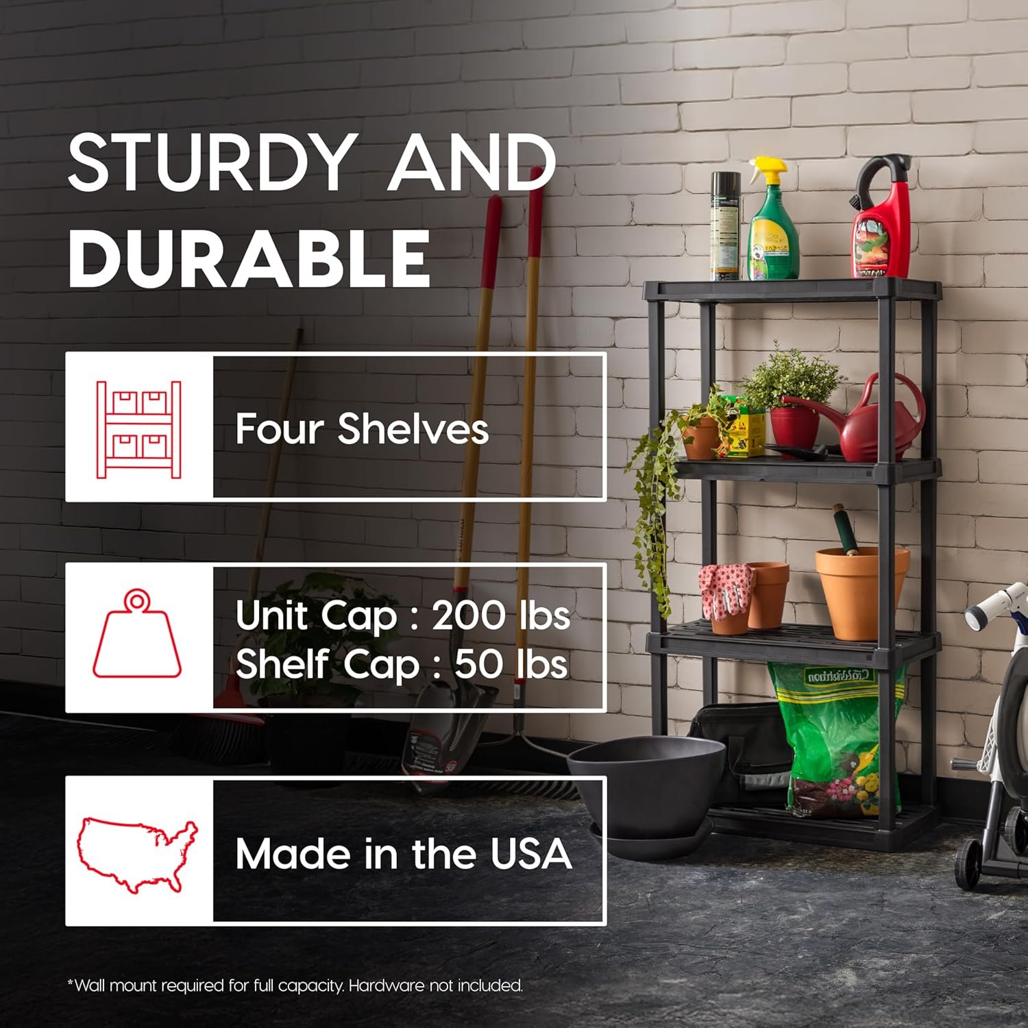 Upgrade your home organization with the IRIS USA 4-Shelf Light Duty Plastic Storage Shelves from the Iris Ohyama Store—a versatile and durable modular shelving unit made from recycled materials in the USA. With a weight capacity of 200 lbs and tool-free assembly, this compact 48-inch tall shelf is perfect for bathrooms, laundry rooms, or garages. Its integrated leg design and solid plastic construction make it both sturdy and easy to set up, offering reliable storage for cleaning supplies, towels, tools, and more. Ideal for any space, this sleek black organizer combines strength and style for all your storage needs.
