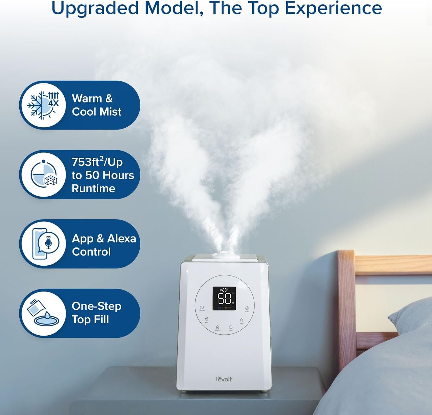 The smart humidifier from LEVOIT is engineered for superior performance in large homes and bedrooms. This product caters to users who desire effortless humidity control, pairing technology and comfort in one modern device.