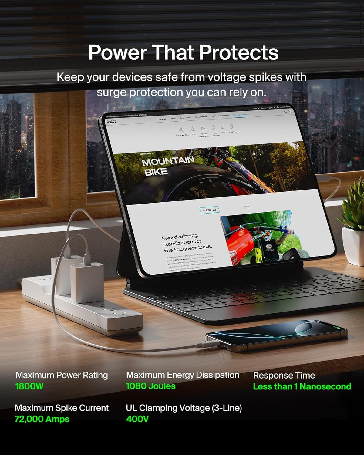 - 1080 Joules Energy Rating: Generous surge absorption ensures essential devices like computers and home electronics are shielded from voltage spikes and power surges.