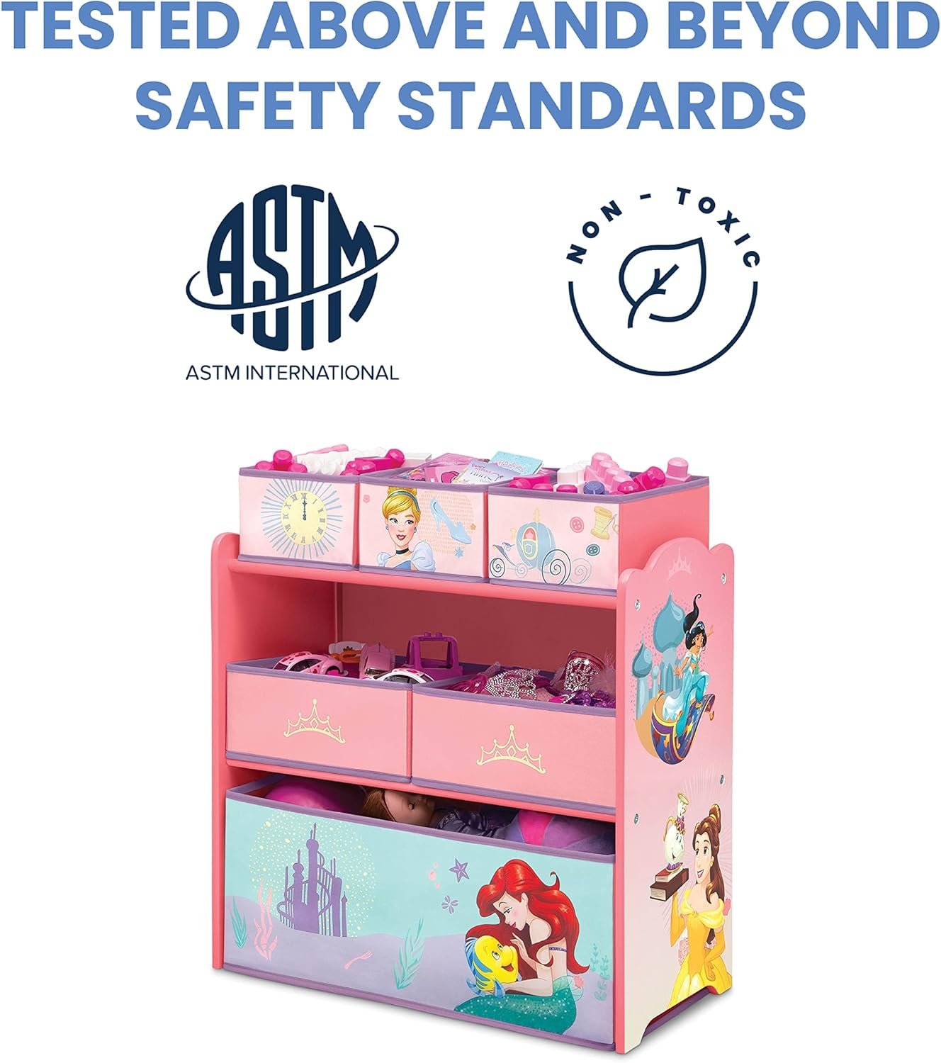 Both Delta Children and the Humble Crew offer sturdy fabric toy bins and safe hardware, but the Disney Princess model is unmatched for fans seeking princess storage with extra flair. Price-wise, it remains highly competitive, usually around $30-40, often outpacing the costlier, larger wire or plastic units found at big box stores.