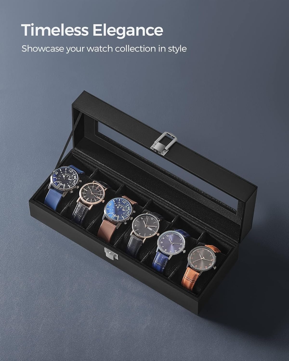 - Clear Viewing Glass: The large glass lid transforms this display case into an elegant home for timepieces while keeping dust away.