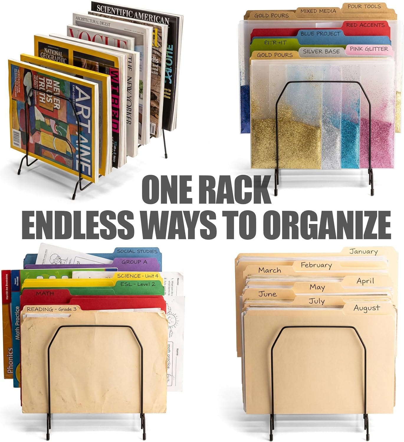 With its sturdy black metal wire construction, the 8 compartment sorter offers ample space for everything from letter legal files to magazines and mail. The slanted, visible sections let you quickly grab needed paperwork without fumbling. Whether you work from home or in a bustling office, this tool promises the visual clarity and separation needed to keep things organized.